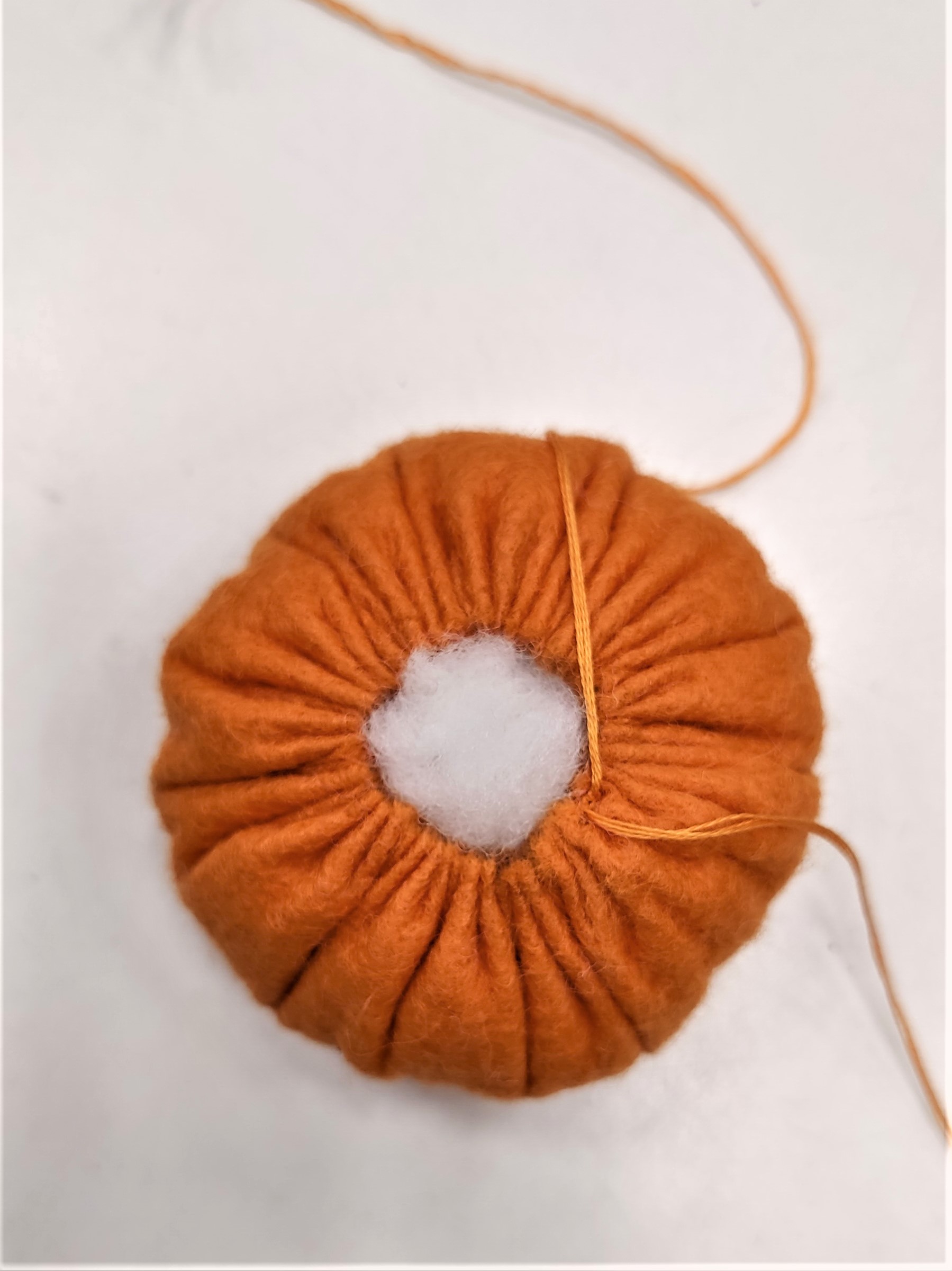 2. Apšuj malas parastā dūrienā un savelc kopā ar diegu.