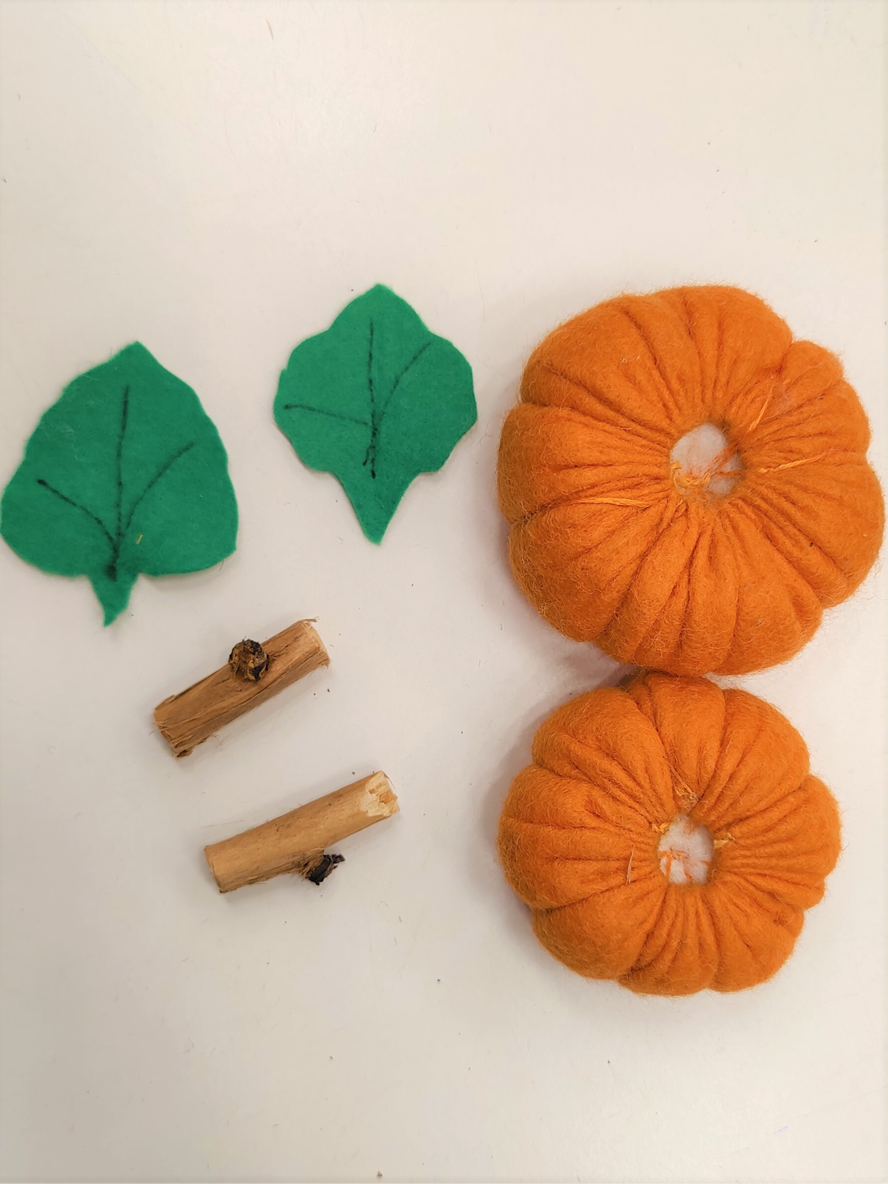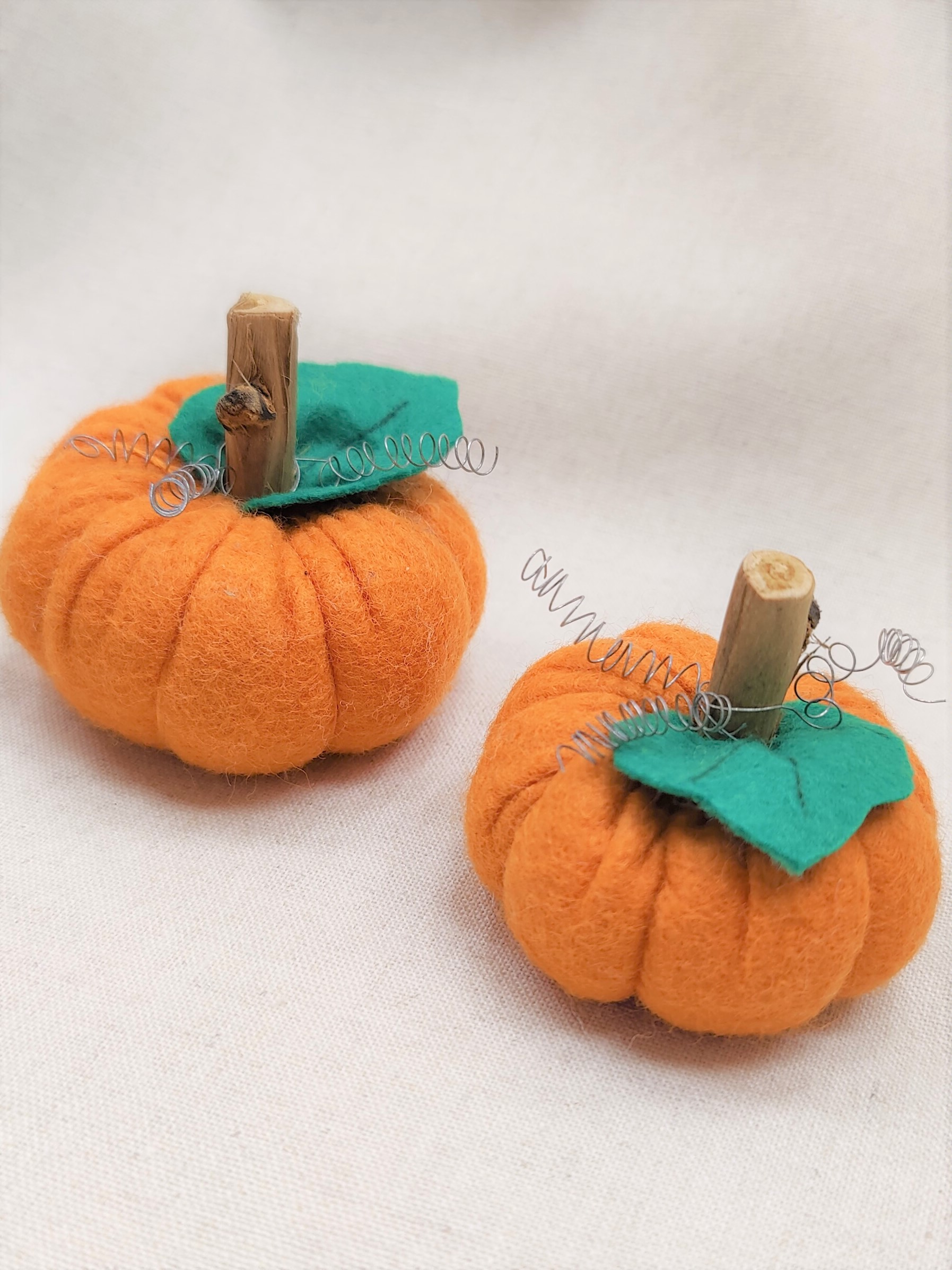 8. Uzliec lapu ķirbim virsū un koka zaru tajā pašā caurumā, caur kuru ieliki pildījuma materiālu. Dekorē ar spirāles formas stiepli.