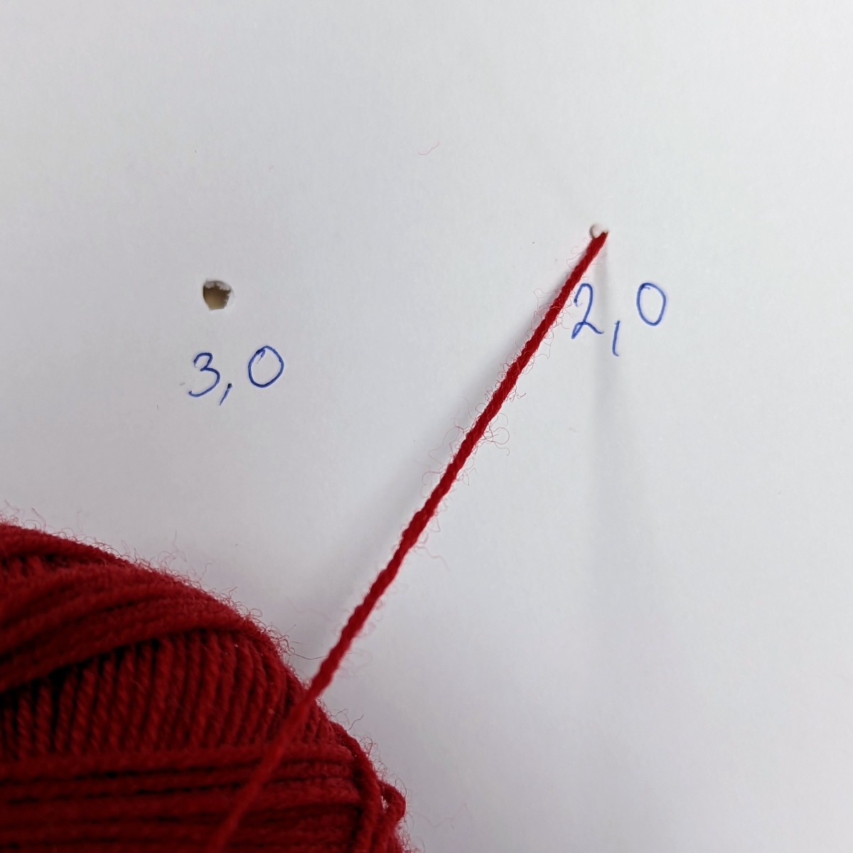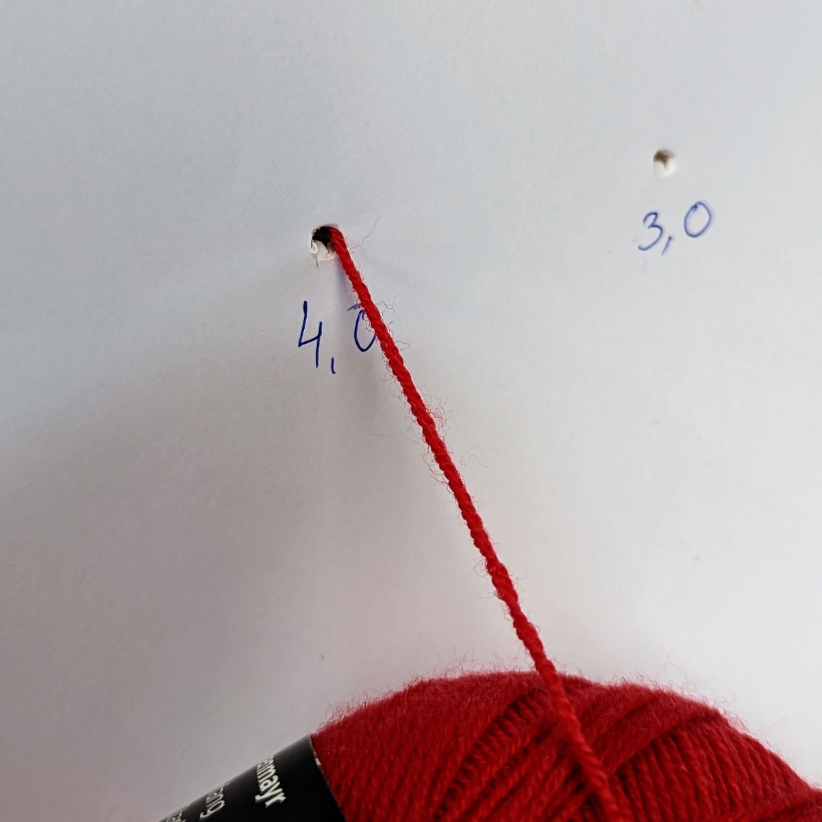 If you no longer have the yarn label or it does not contain a recommendation for the needle size, it is possible to find the correct needle size in another way. Take a sheet of paper and poke several holes in it with the needles in different sizes. Then pull the yarn through the holes and see which one fits the best. If the yarn goes through too easily, the needle is too big. If the yarn does not fit through the hole or starts to pull, the needle is too small. This method can also be used to find the right size of needles if the yarn label is lost or damaged.