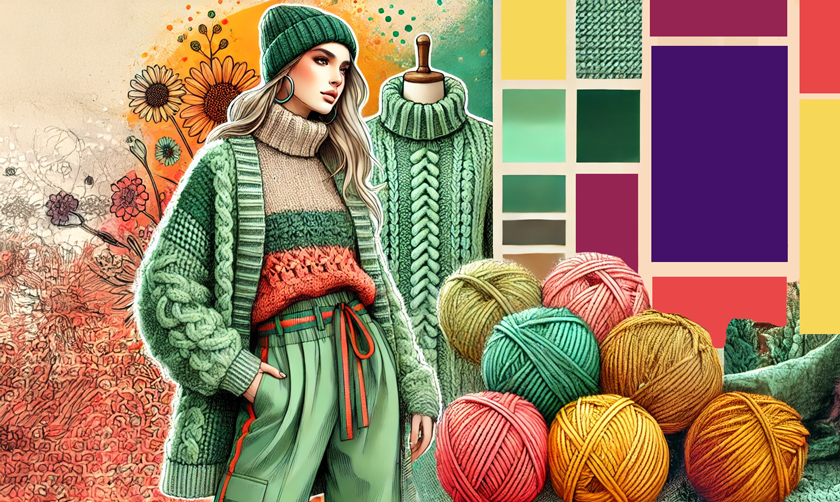 Если в зимний период мода имеет тенденцию смягчаться, то пряжа не подчиняется никаким правилам — чем красочнее, тем лучше! В тренде этого сезона преобладают холодные оттенки зеленого матча, усиленные закатно-коралловым и подсолнечно-желтым. Это сочетание, которое привносит летнее солнце в серую зимнюю суету.