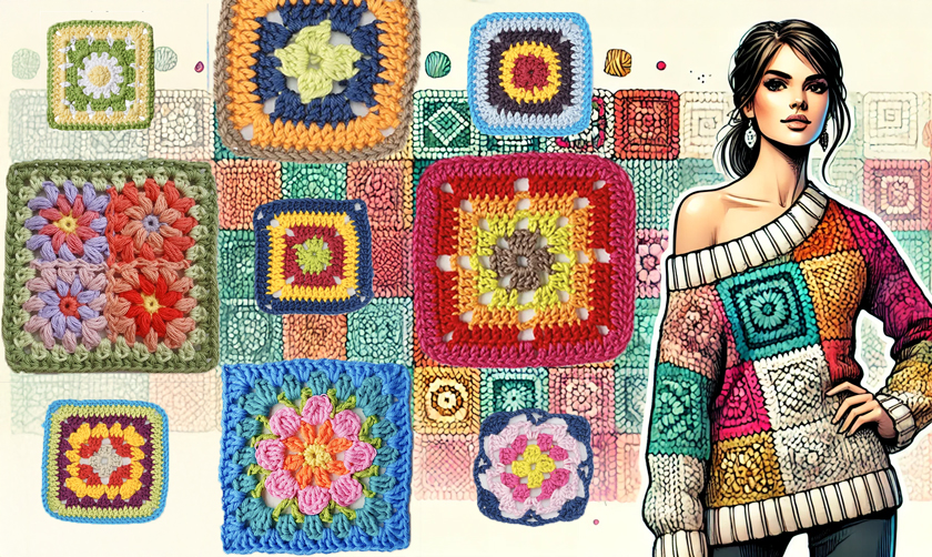Идеальный тренд для тех, кто любит вязать на ходу. Возьмите спицы или крючок и создайте свитер квадрат за квадратом, используя классические схемы узоров "бабушкиных квадратов". Их быстро выполнить, легко взять с собой, и они придают конечному результату приятный игривый вид. Кроме того, это отличный способ израсходовать остатки пряжи!