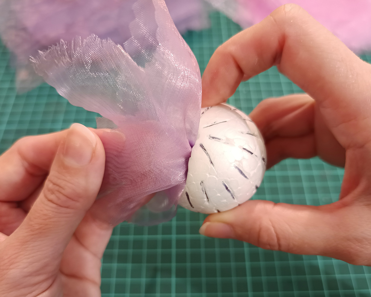 - Если шар покажется неплотным, то добавьте новые надрезы и заполните их дополнительной тканью. Всегда проще начать с меньшего количества надрезов и добавлять больше по мере необходимости.