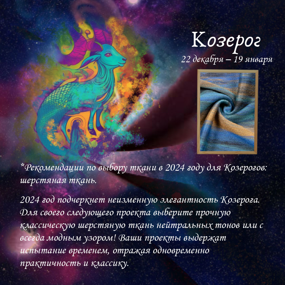 Рекомендации по выбору ткани в 2024 году для Козерогов: шерстяная ткань.