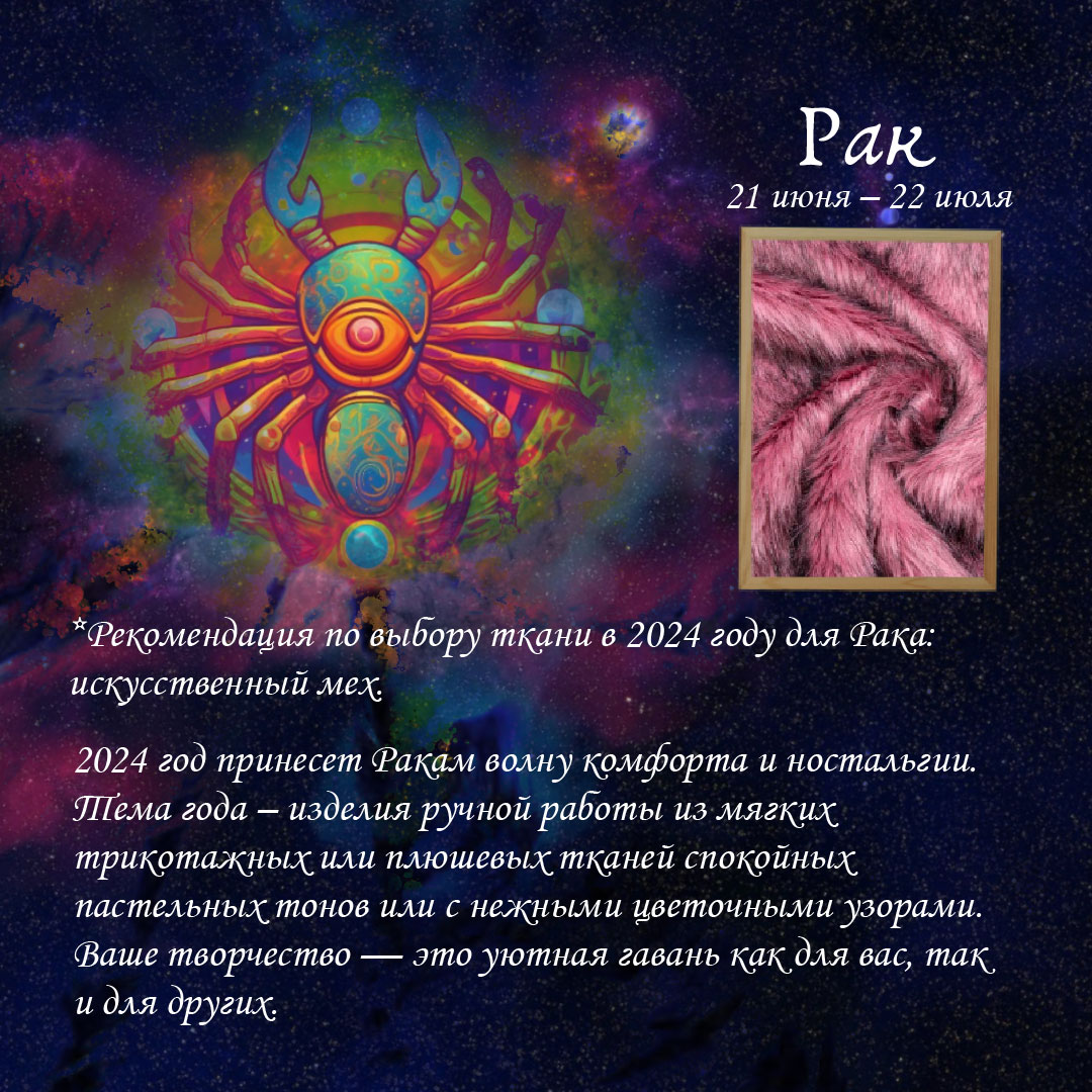 Рекомендация по выбору ткани в 2024 году для Рака: искусственный мех.