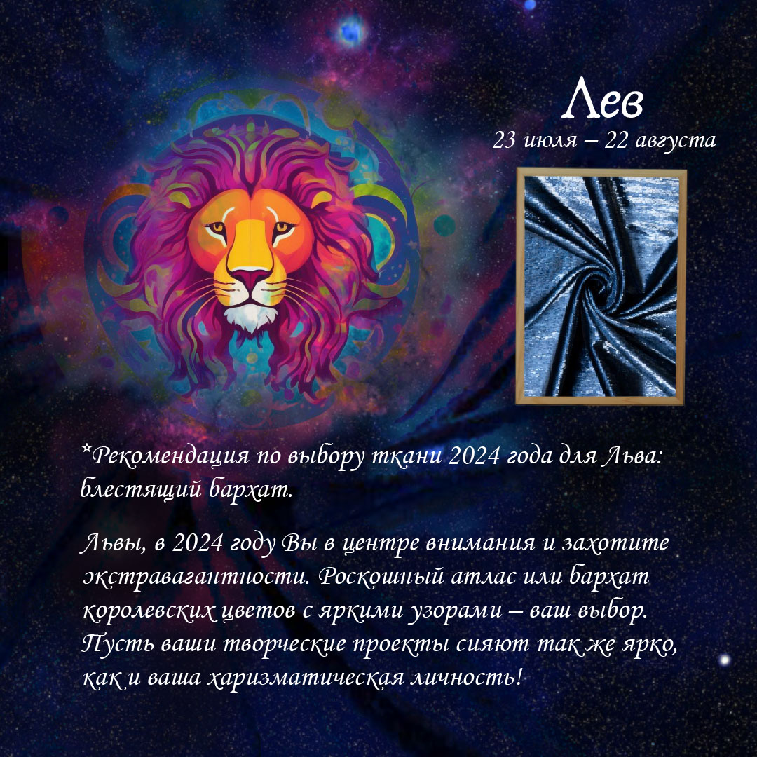 Рекомендация по выбору ткани 2024 года для Льва: блестящий бархат.