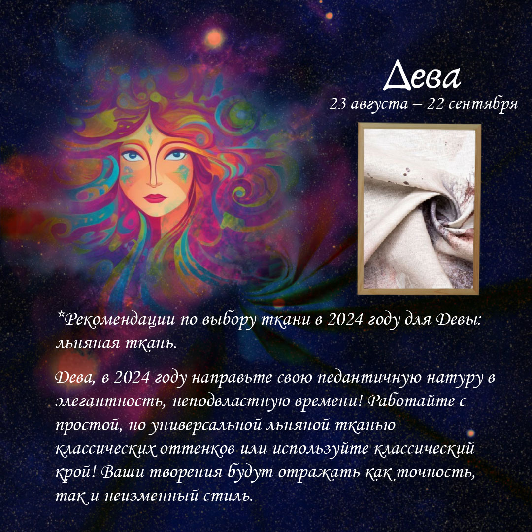 Рекомендации по выбору ткани в 2024 году для Девы: льняная ткань.
